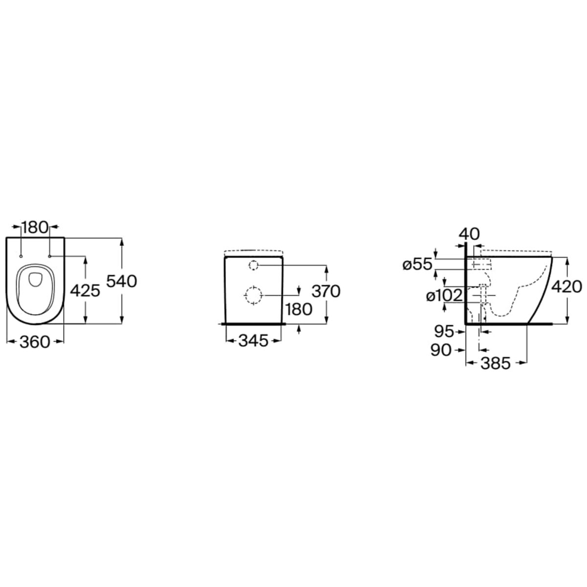 Roca Meridian taza de inodoro de pie sin reborde con descarga de remolino blanco brillante A347747000