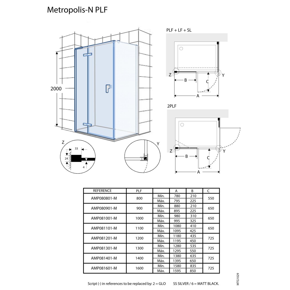 Puede completarse con paredes laterales - debe pedirse el kit de montaje AMP0320002 para la versión cromada o AMP0320006 para la versión negra.