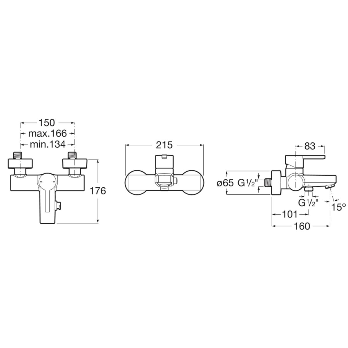 Roca Naia Black grifo de bañera y ducha a pared negro A5A0296CN0