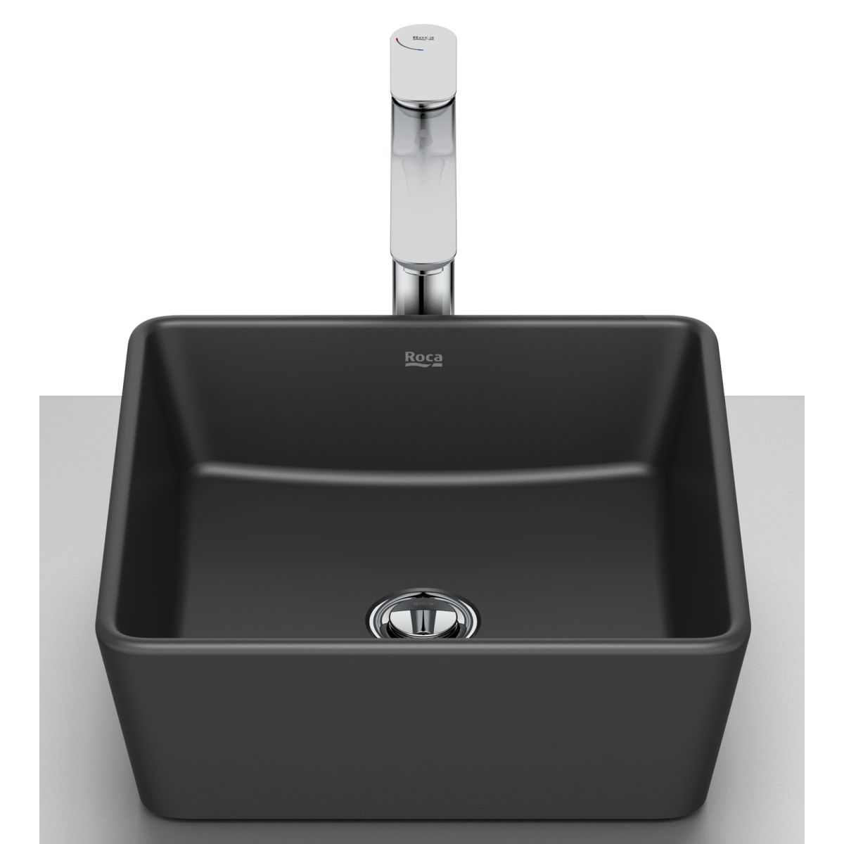 Roca Optica lavabo 35x35 cm cuadrada sobre encimera negro A327B12080