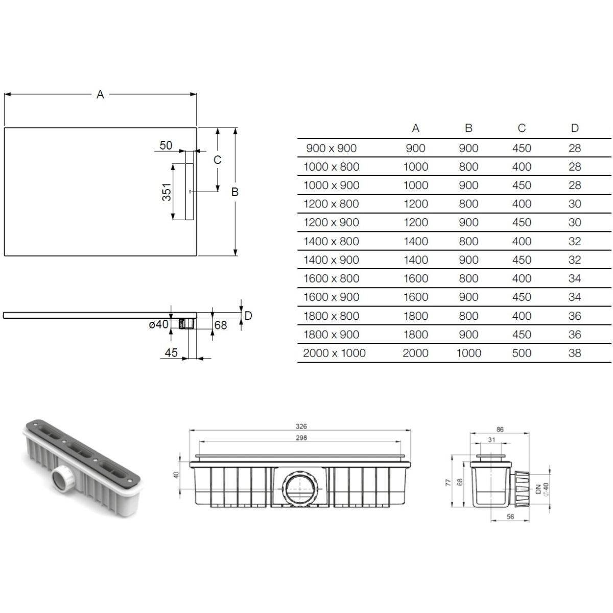 - altura del sifón desde el fondo del plato de ducha: 68 mm
