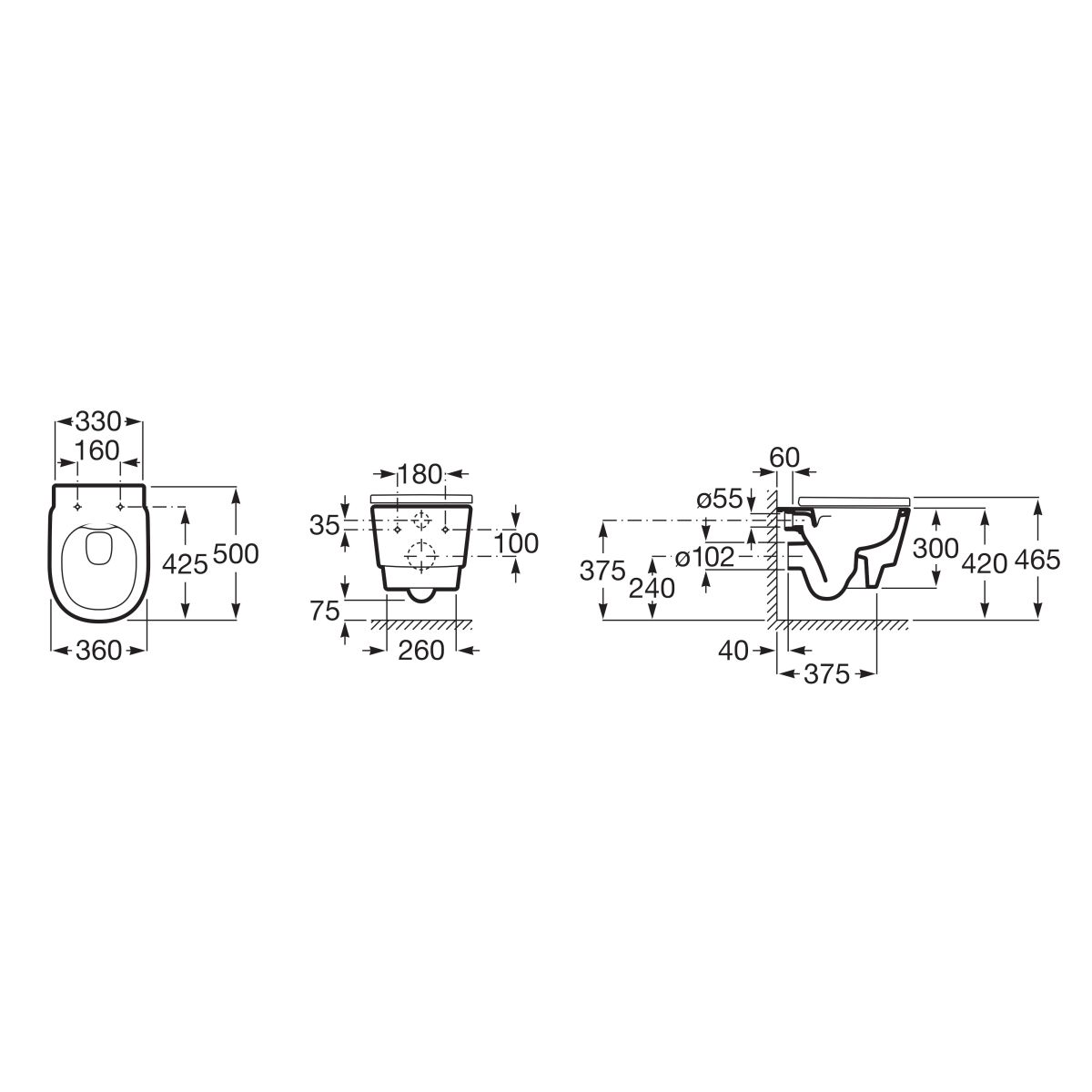 Roca Tura taza de inodoro suspendido sin reborde blanco brillante A346697000