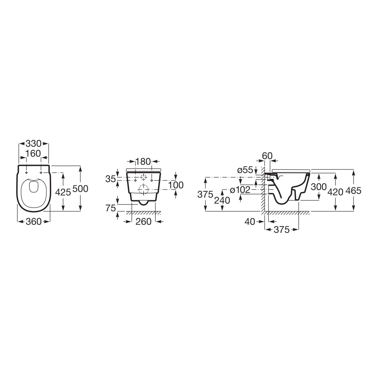 Roca Tura taza de inodoro suspendido sin reborde blanco brillante A346697S00