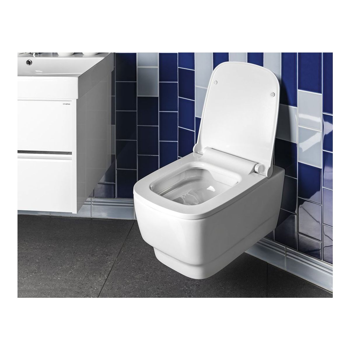 - gracias a un sistema hidráulico, tanto la tapa como el asiento del inodoro se hunden lentamente en la taza. El descenso gradual del asiento y la tapa garantiza la seguridad y evita daños en el asiento y la taza
