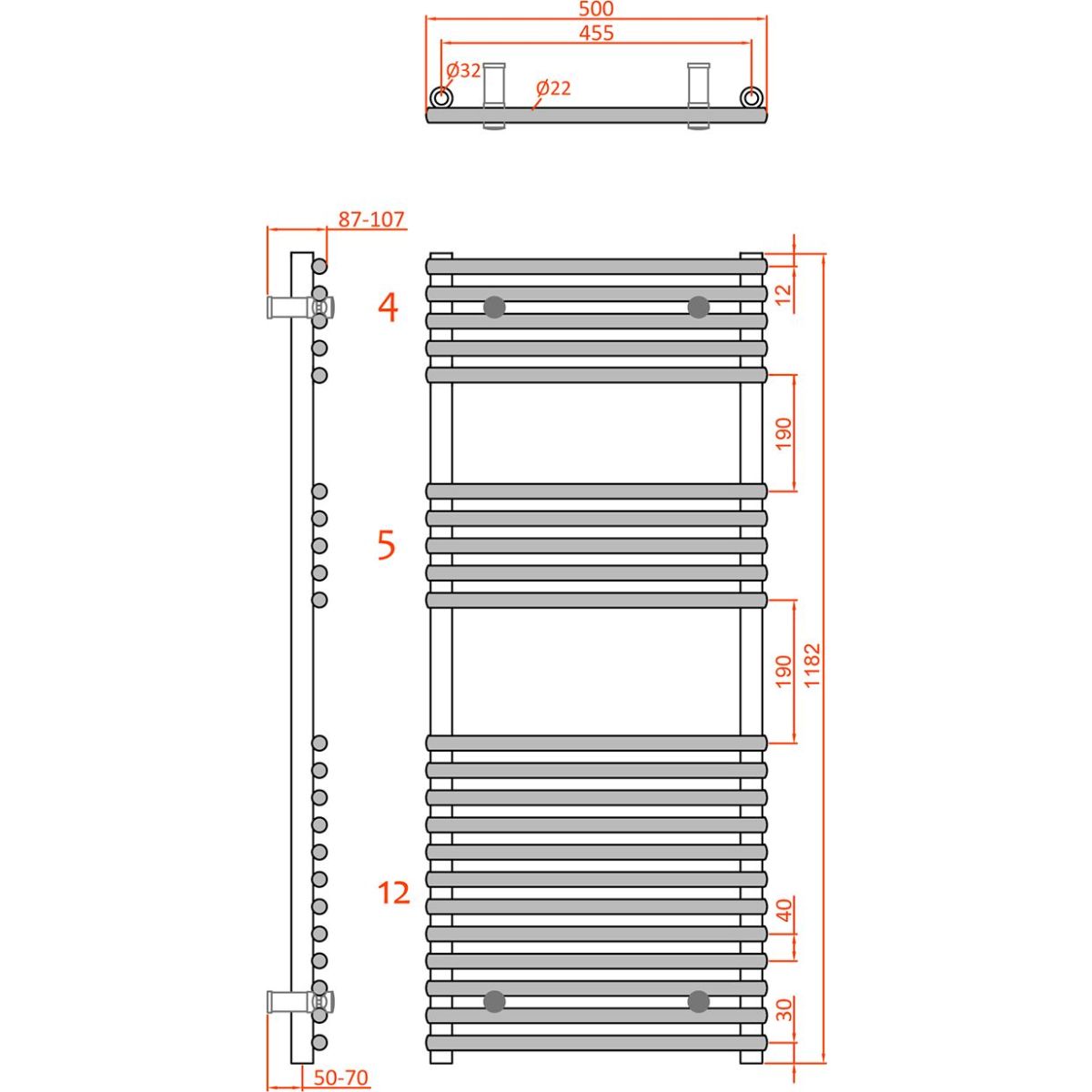 - posibilidad de utilizar una válvula manual (puede instalarse en el lado izquierdo/derecho independientemente de la ubicación del suministro de agua caliente) o una válvula con cabezal termostático