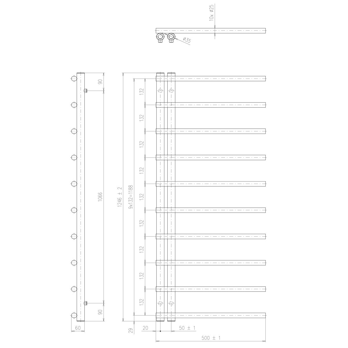 Sapho Justina radiador de baño toallero 124.6x50 cm negro IR546B