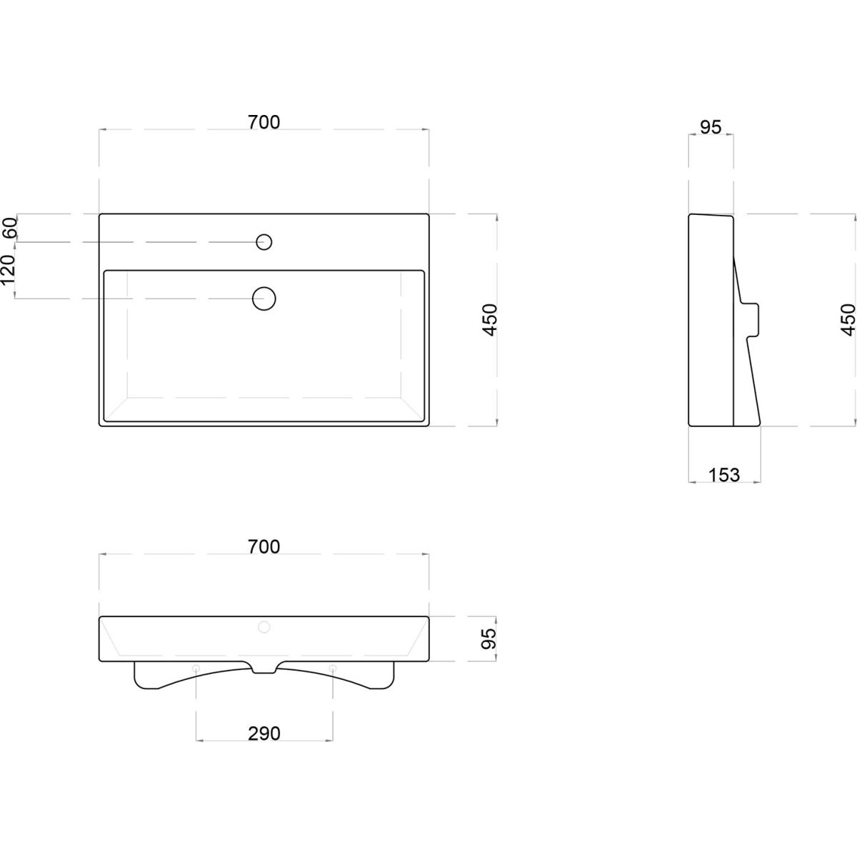 Sapho Kare lavabo 70x45 cm rectangular clásico-para mueble blanco 17070