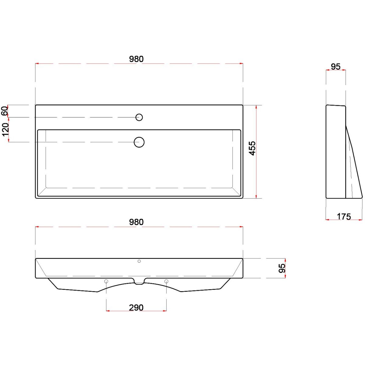 Sapho Kare lavabo 98x45.5 cm rectangular clásico-para mueble blanco 17100