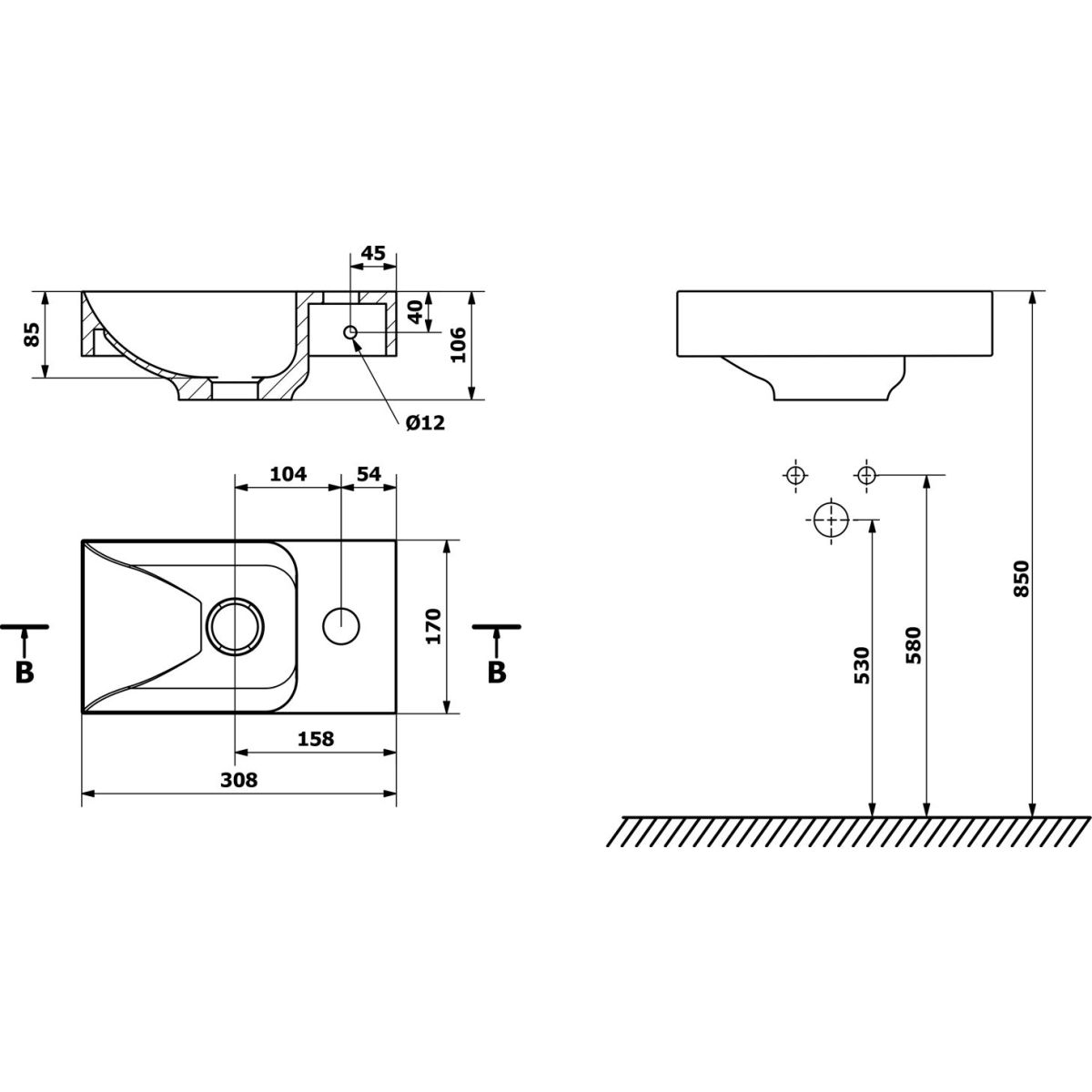 Sapho Small lavabo 30.8x17 cm rectangular clásico-para mueble blanco PK305