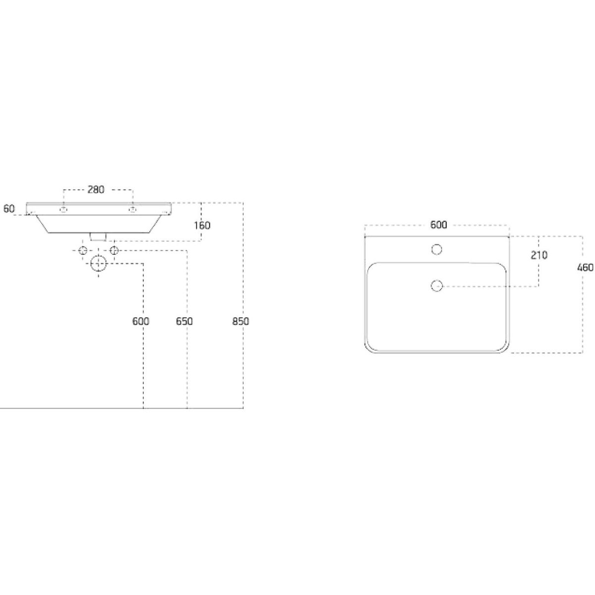 Sapho Thalie lavabo 60x46 cm rectangular clásico-para mueble blanco TH11060