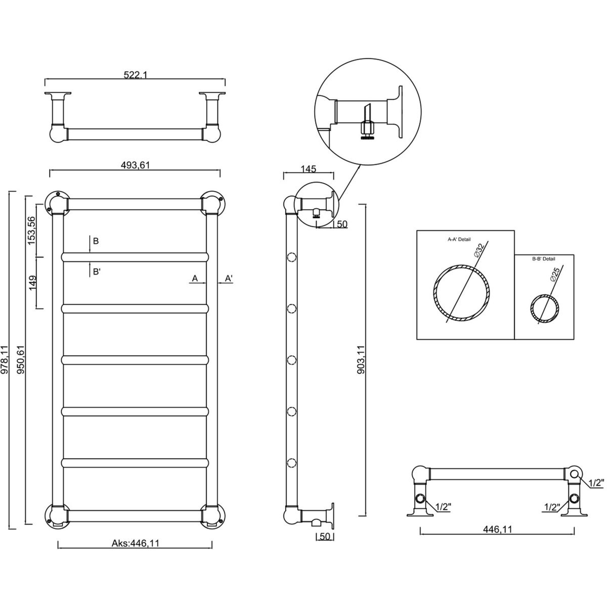 Sapho Uno radiador de baño decorativo 95.1x49.3 cm acero inoxidable NR816