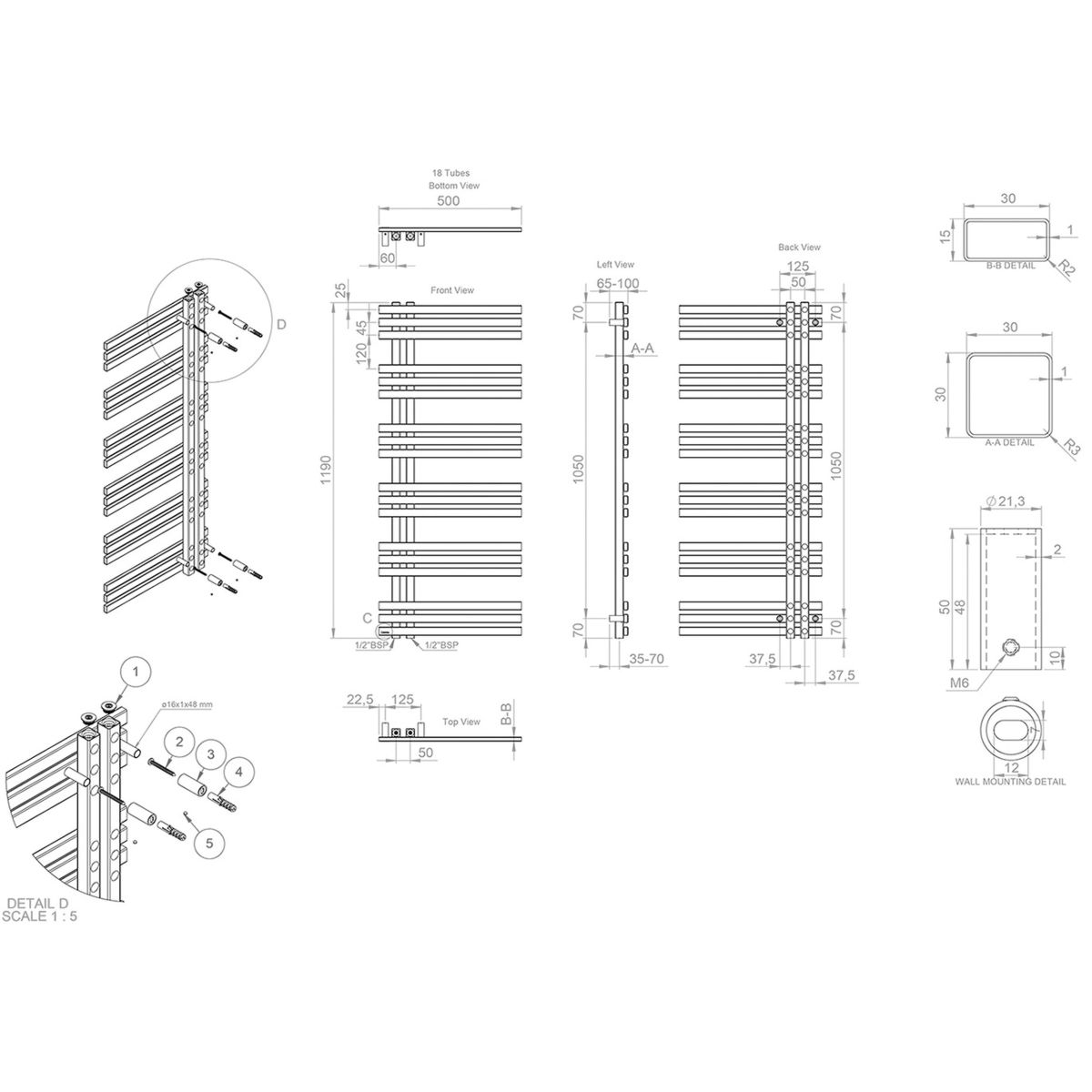 Sapho Vista radiador de baño decorativo 119x50 cm acero inoxidable NR613