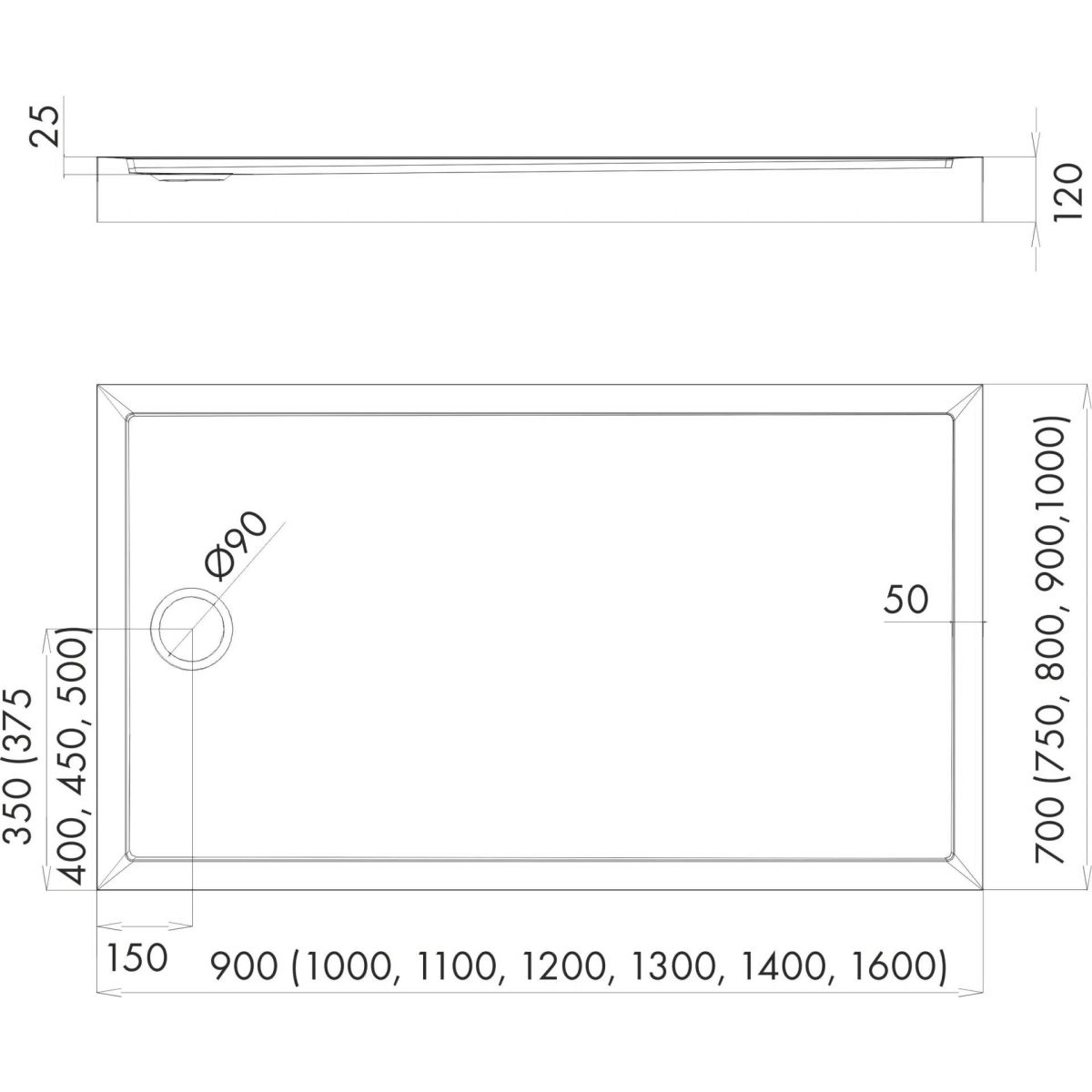 Schedline Cameron plato de ducha rectangular 110x90 cm blanco 3ST.C2P-90110