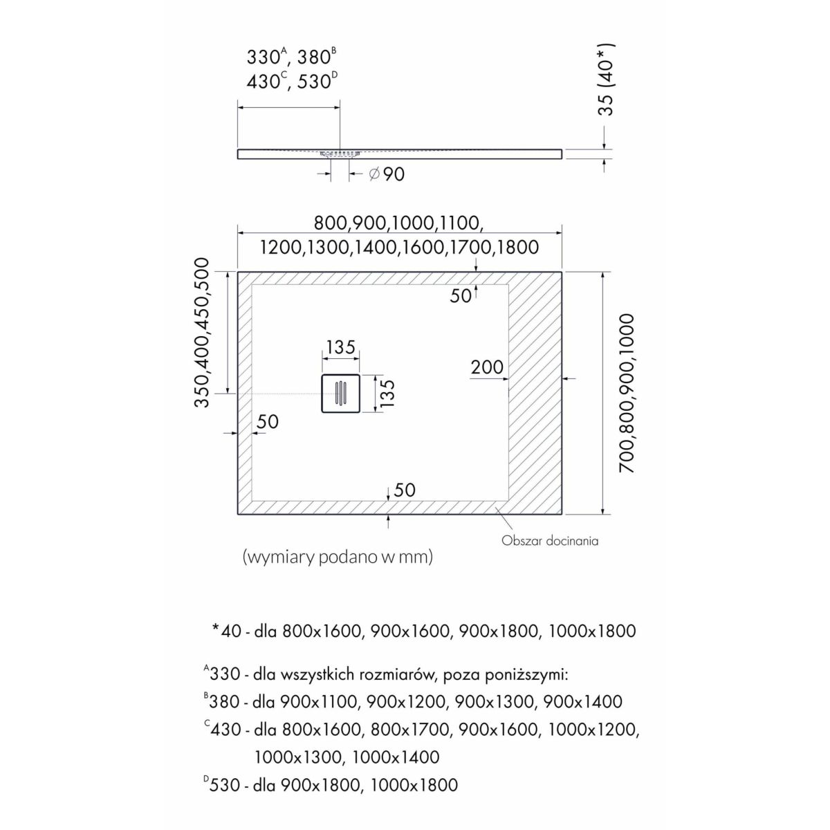 Schedline Protos White Stone plato de ducha rectangular 160x90 cm blanco 3SP.P1P-90160/B/ST-M1/B/ST
