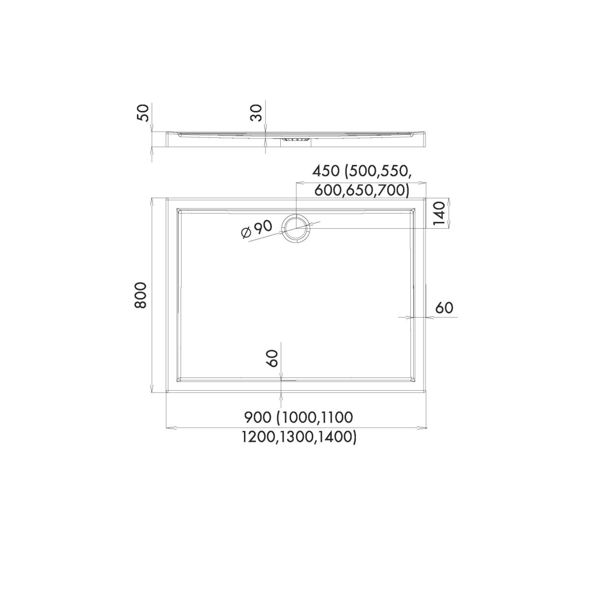 - Diámetro de desagüe: Ø 90 mm