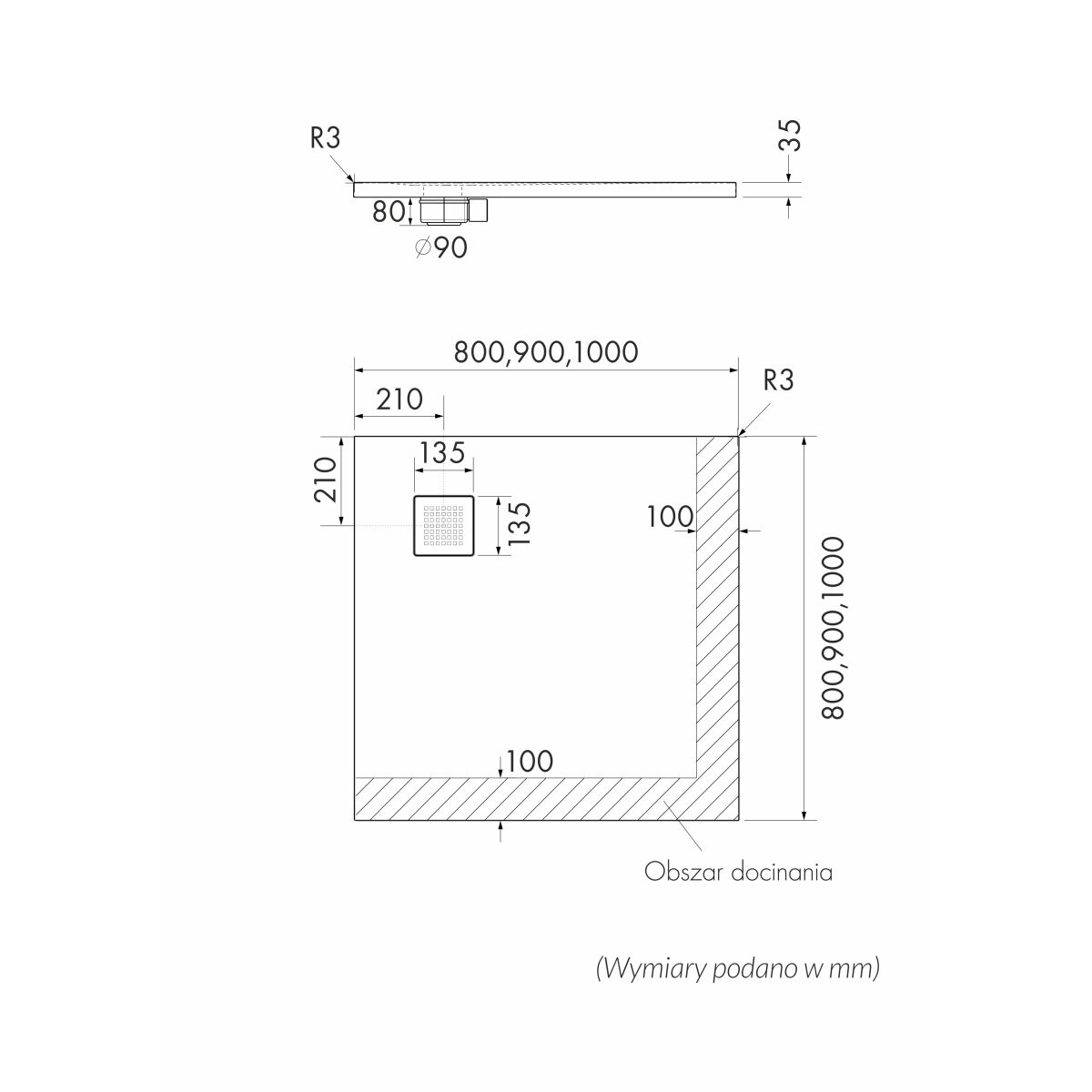 - diámetro del desagüe: Ø 90 mm