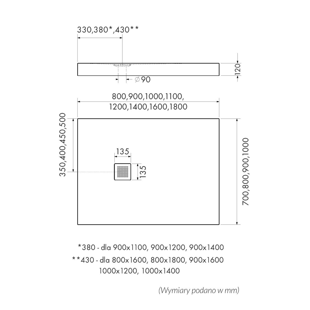 Schedpol New Horizons White Stone plato de ducha rectangular + rejilla 90x70 cm blanco 3.3333/B/ST-M2