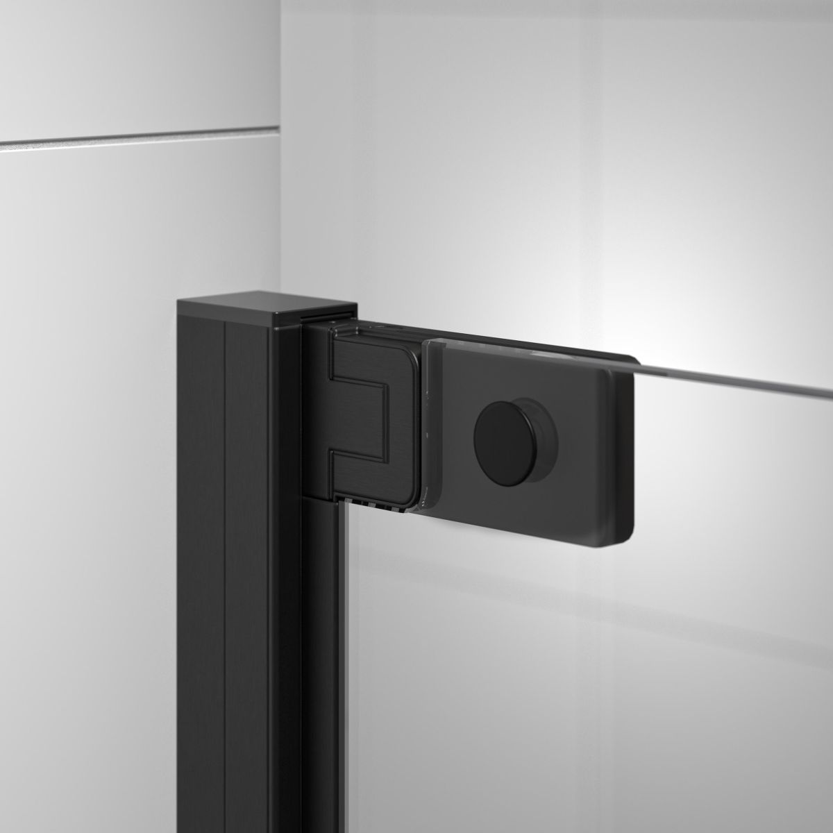 La puerta empotrada con alas de la serie Inc. de Sealskin presenta un acabado minimalista y elegante. Gracias a su diseño, la puerta es transparente y encaja perfectamente en un cuarto de baño moderno. Nuestros diseñadores no sólo prestan atención al diseño, sino también a la funcionalidad. La puerta está equipada con un sistema de cierre automático y las bisagras están montadas a ras del cristal. De este modo, la puerta puede secarse rápidamente después de ducharse. El acabado negro mate, atemporal y de gran calidad, y el revestimiento antical del cristal le garantizan que podrá disfrutar de su puerta de ducha Inc. durante muchos años.