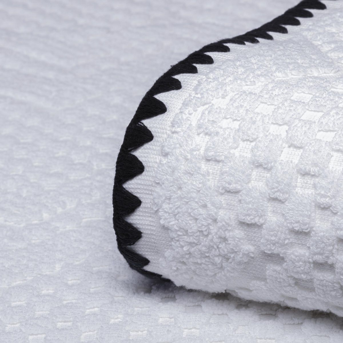 Lo que hace de la toalla Luna una verdadera obra maestra es su acabado bordado, un homenaje a la artesanía tradicional portuguesa. Este bonito detalle pone de relieve el cuidado y la atención con que se fabrica cada toalla en Portugal. Además, el algodón utilizado procede de una producción cuyo objetivo es proteger a los agricultores y mejorar el producto final. La toalla Luna también se distingue por su moderno estampado en zigzag. Está disponible en blanco atemporal con dobladillo negro, lo que la hace ideal para cuartos de baño de estilo minimalista. A pesar de su pequeño tamaño, proporciona una gran comodidad. En resumen, la toalla de invitados Luna es un artículo imprescindible para cualquiera que aprecie el lujo y la comodidad