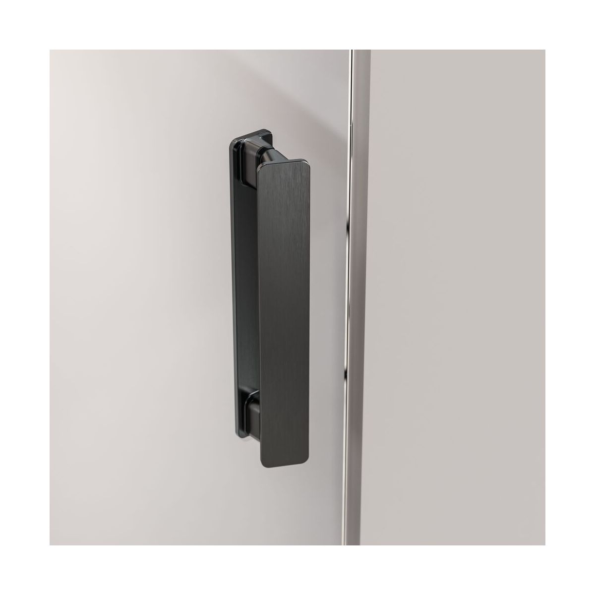 Añada más comodidad a su cuarto de baño con la puerta batiente Pure para el nicho. Con su diseño minimalista, su cuarto de baño parecerá inmediatamente espacioso y abierto. La puerta tiene 90 cm de ancho y hasta 200 cm de alto, lo que le proporciona más calidez y comodidad al bañarse. Las fijaciones de acero inoxidable de alta calidad garantizan una unión plana con el cristal de seguridad de 8 mm de grosor con revestimiento antical. Esto mantiene el cristal limpio y facilita su secado después del baño. ¿Quién no querría eso? Esta puerta abatible puede abrirse hacia dentro o hacia fuera y está equipada con un sistema de cierre automático que facilita el cierre. Las bisagras y el tirador están acabados en gris cepillado. Un acabado sofisticado y elegante que se adapta a un cuarto de baño moderno y minimalista.