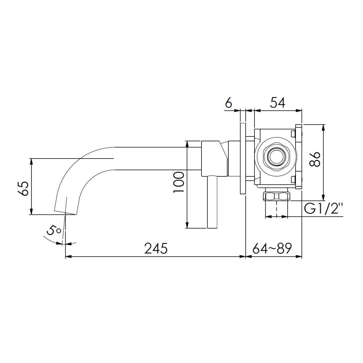 - alcance del caño 245 mm