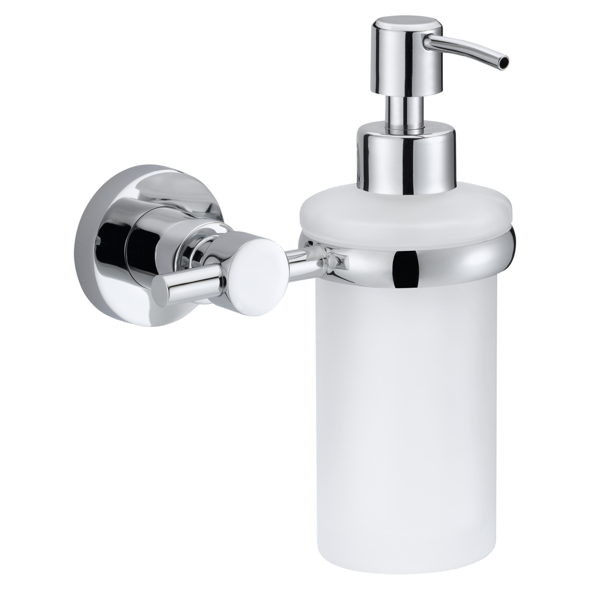 El dispensador de jabón autoadhesivo tesa® Loxx en cromo de alto brillo.