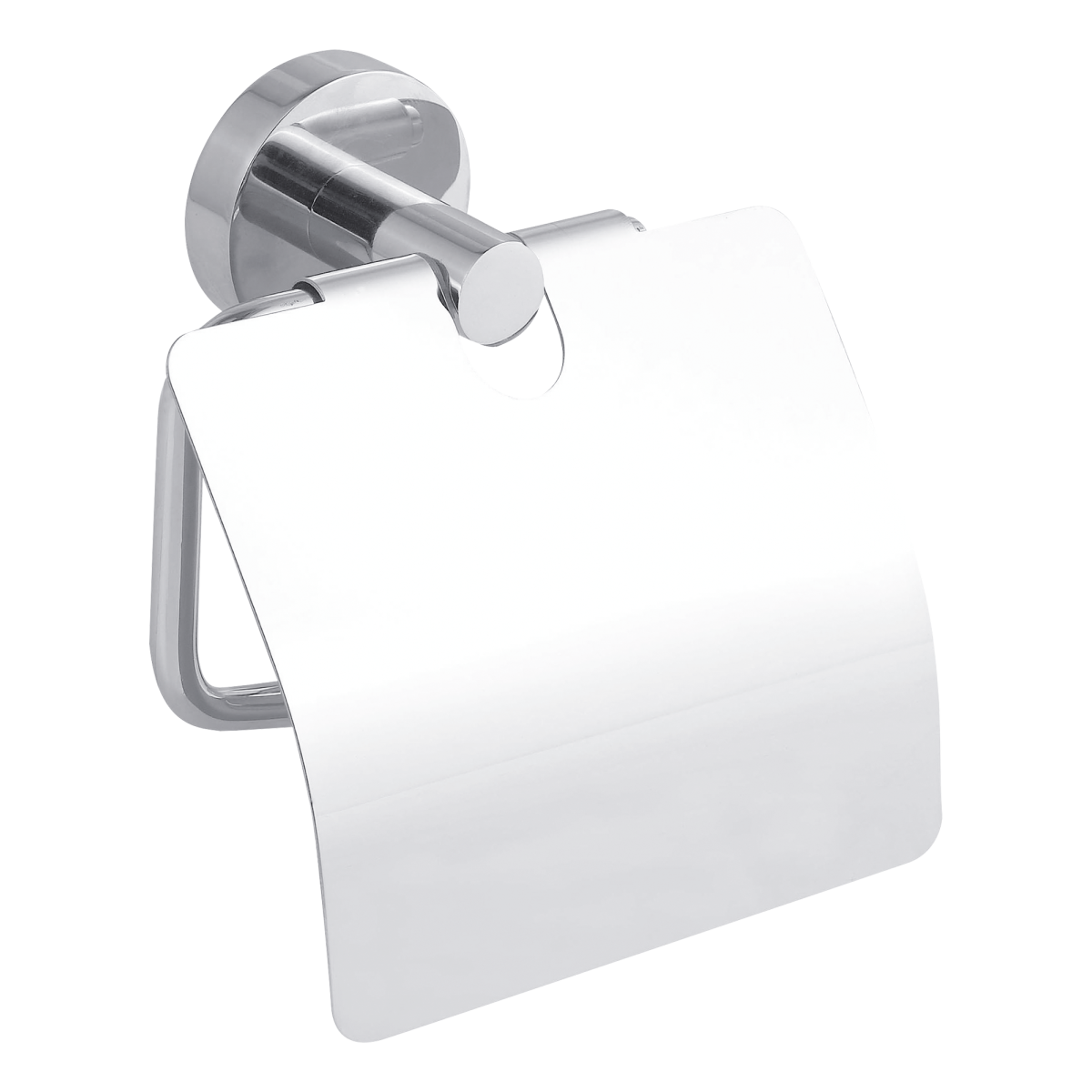 Portarrollos de papel higiénico autoadhesivo con tapa tesa® Smooz cromado de alto brillo.