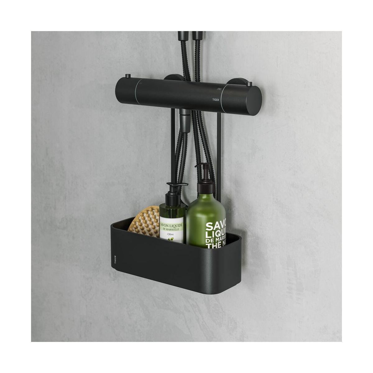 Entras en el cuarto de baño somnoliento y abres la ducha. ¿Dónde está el gel de ducha? El bote de champú se te resbala de las manos... un gran comienzo. Bueno, no con 2-Store: esta cesta de ducha mantiene todos sus accesorios de ducha esenciales a mano. Es el comienzo perfecto del día. Y si sus invitados entran en el cuarto de baño, quedarán impresionados por esta atrevida cesta negra.