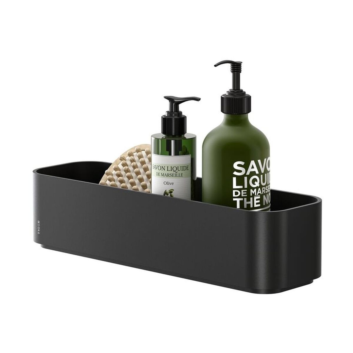 - fácil de usar: base plana y laterales altos para que los productos de ducha permanezcan estables en el resistente estante / cesta