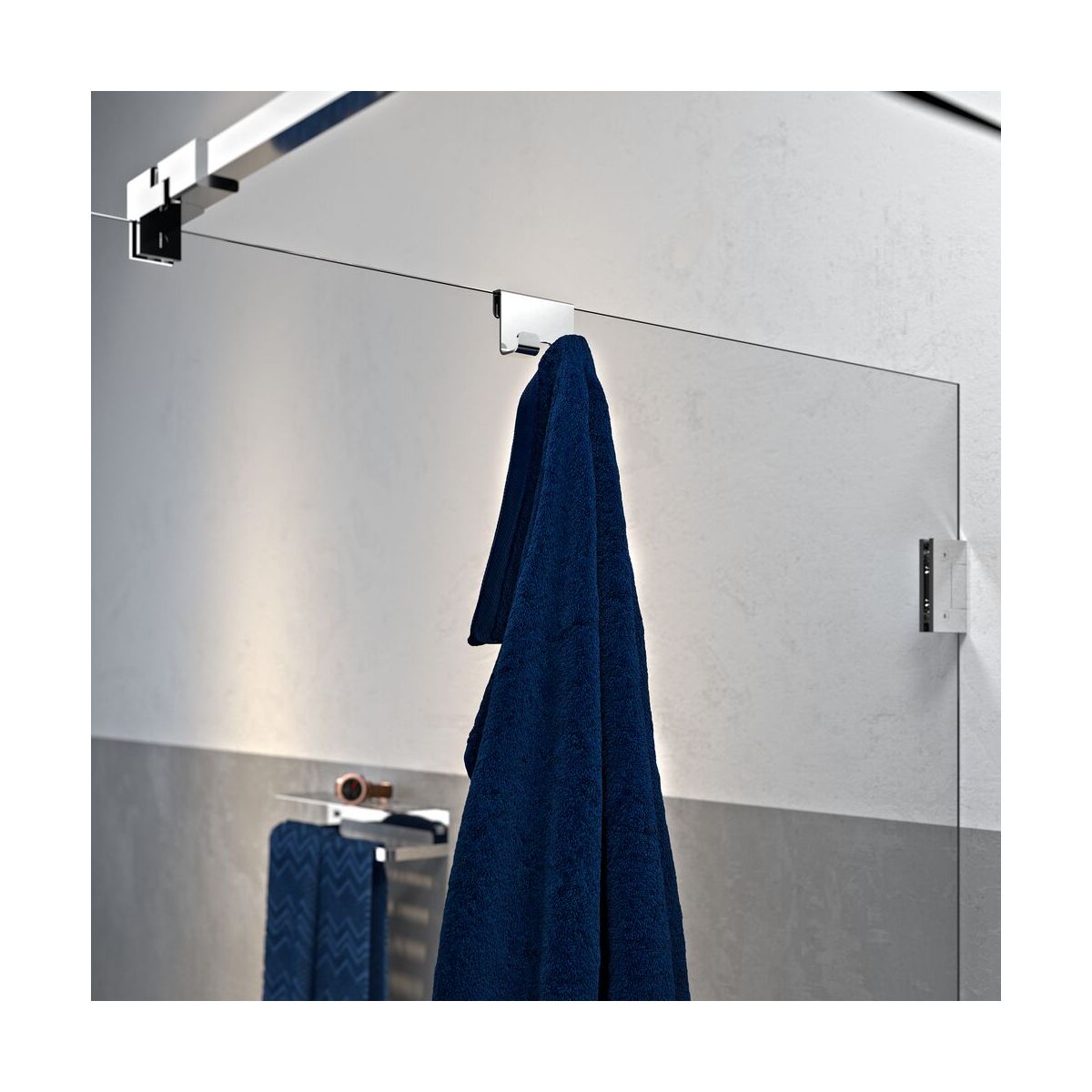- el gancho tiene espacio para una maquinilla de afeitar, una escobilla de goma o toallas