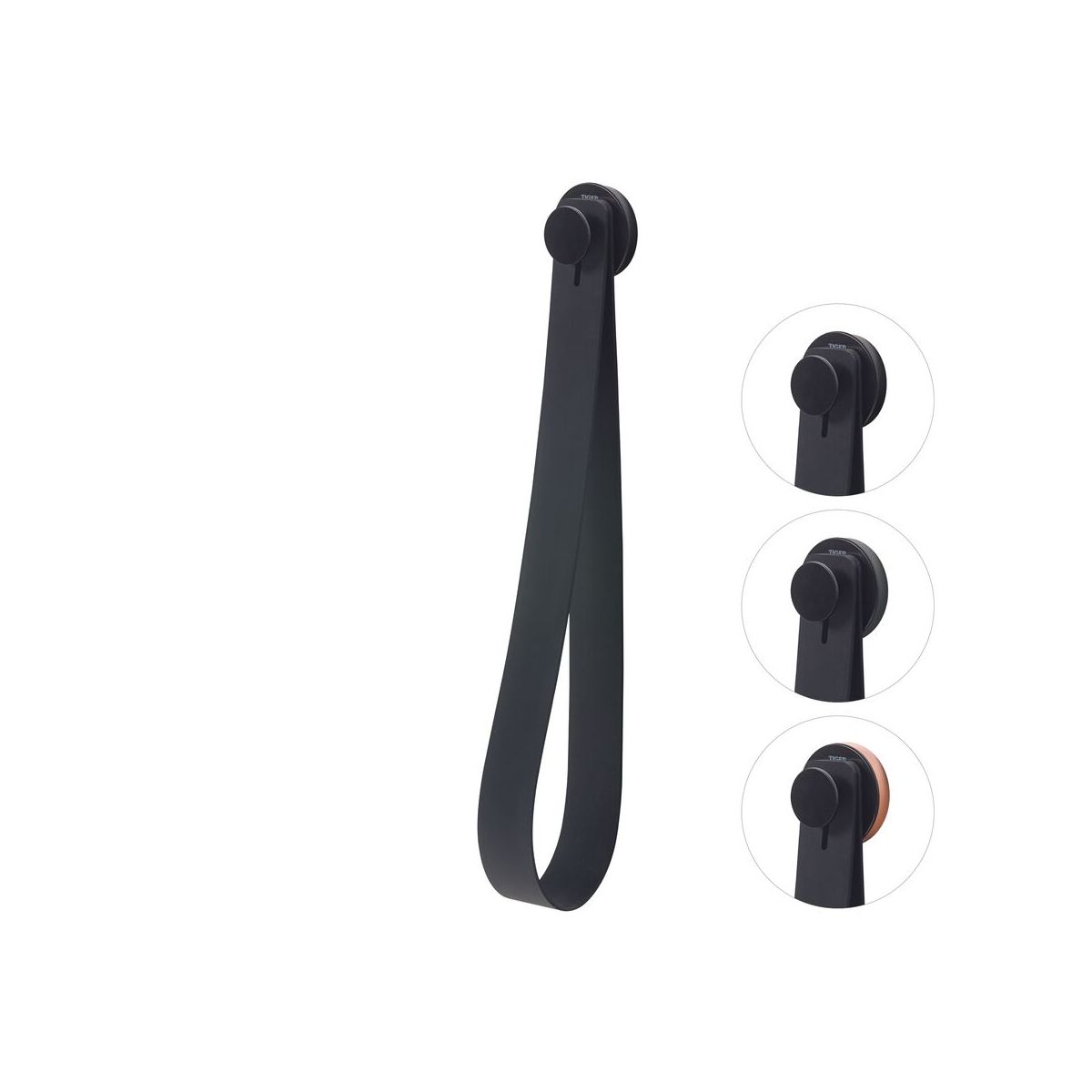 El portarrollos de papel higiénico Tiger Urban en negro mate viene con dos anillos decorativos. Estos anillos, en tonos cobre y gris, aportarán un sutil acento a su cuarto de baño una vez instalados. El asa también puede instalarse sin la anilla, lo que facilita increíblemente la combinación con los elementos del espacio. La banda elástica ofrece espacio para dos rollos de papel, por lo que el papel estará siempre al alcance de la mano. El soporte puede fijarse fácilmente a la pared y los componentes de montaje (incluidos) quedan ocultos, lo que confiere al conjunto un aspecto elegante. La gama Urban incluye una amplia selección de otros accesorios para el baño y el aseo. Un conjunto que combina a la perfección.