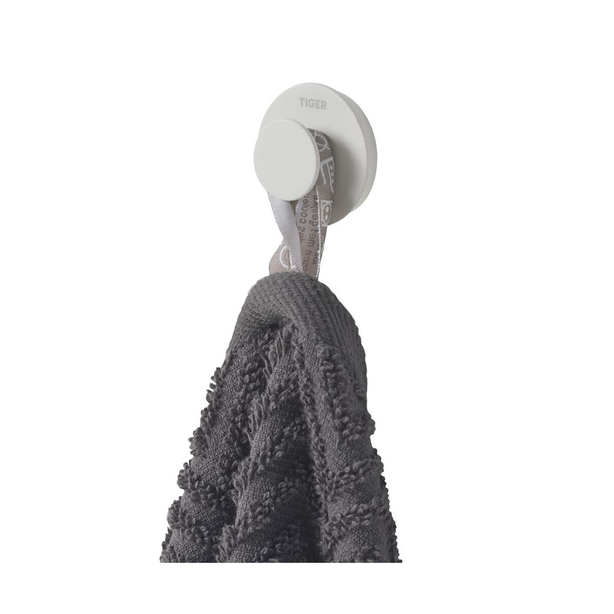 Este gancho de la gama Tiger Urban, fabricado en blanco mate, está provisto de dos anillas decorativas. Estas anillas, en un tono roble claro y gris, aportarán un sutil acento cuando estén instaladas. El gancho también puede montarse sin la anilla, lo que facilita enormemente la combinación con los elementos del espacio. El gancho tiene una robusta fijación autoadhesiva que garantiza una fácil instalación en cualquier superficie lisa y dura. La gama Tiger Urban incluye una amplia selección de otros accesorios de baño y aseo que crean un conjunto bellamente coordinado.