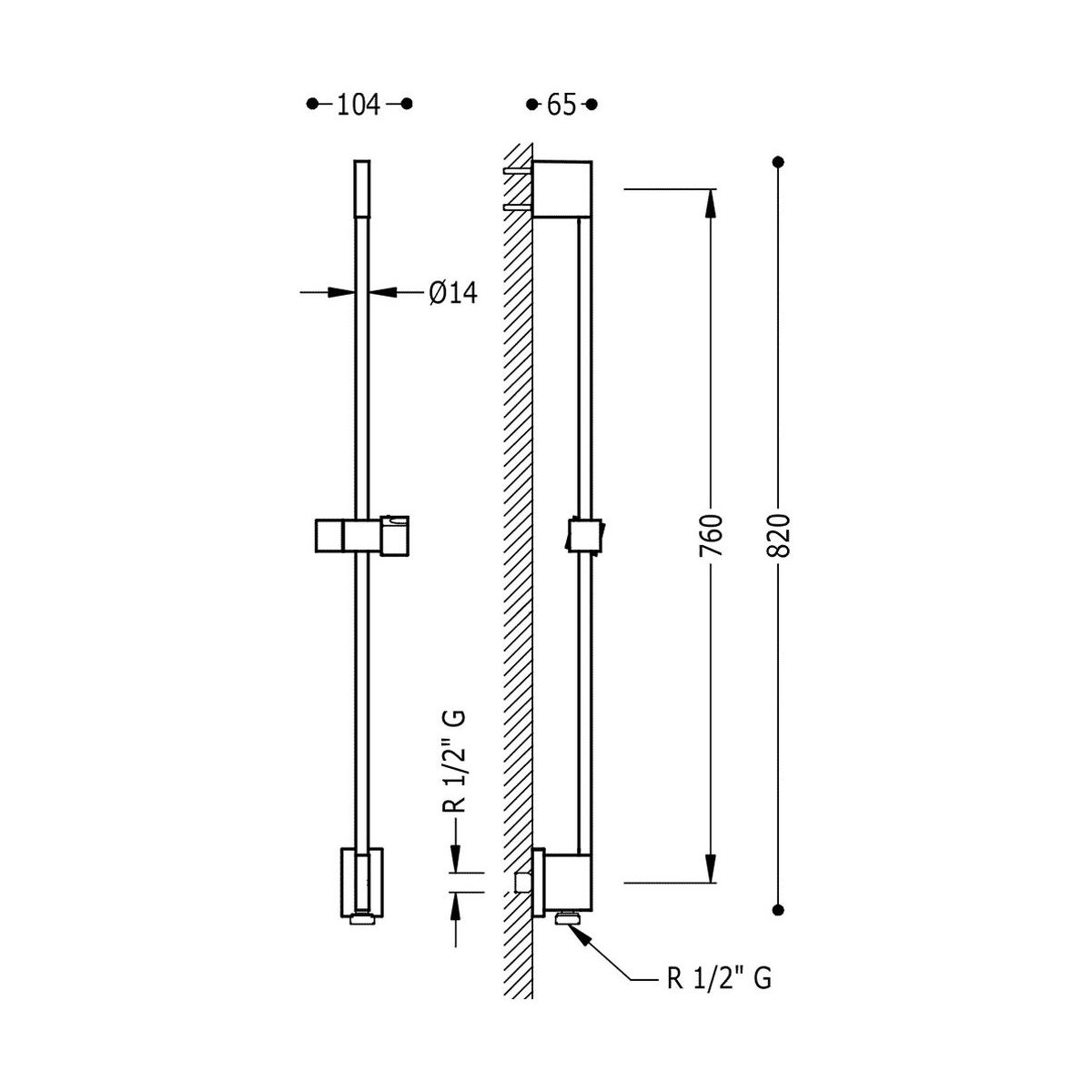 - varilla deslizante con toma de agua en la pared