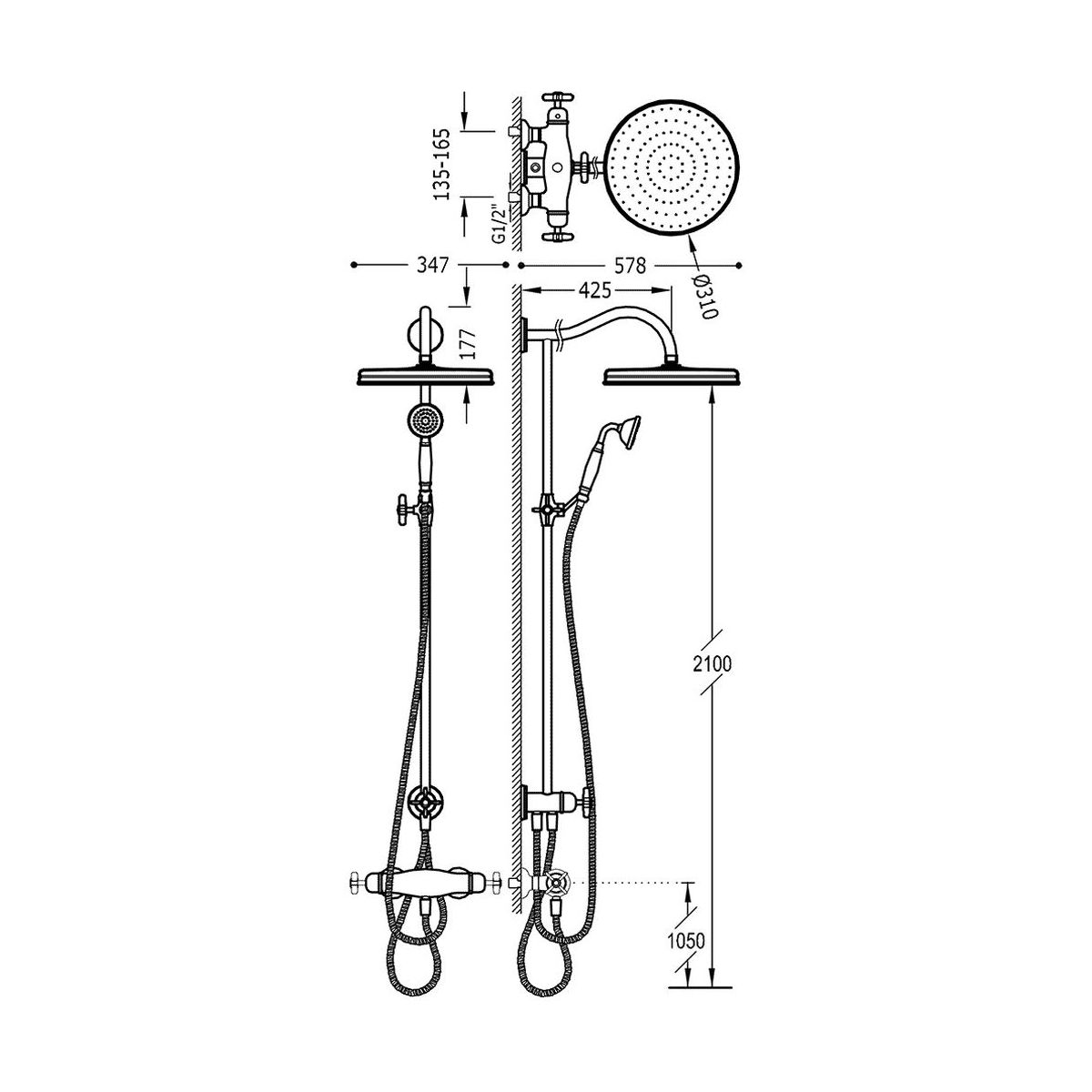 - Incluye: grifo con conmutador, ducha con efecto lluvia, alcachofa de ducha, manguera de ducha, barra de ducha