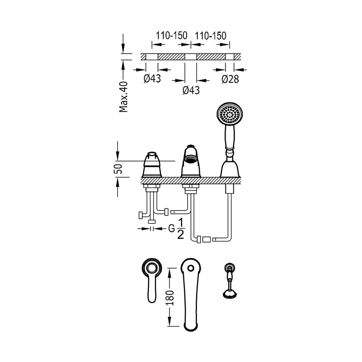 Tres Monoclasic grifo de bañera y ducha en bañera || 242.145.01.LV