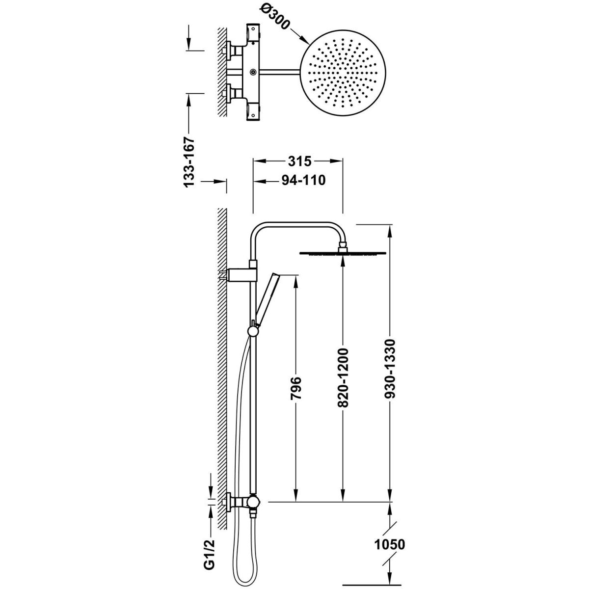 - Incluye: grifo con conmutador, ducha con efecto lluvia, alcachofa de ducha, manguera de ducha, barra de ducha
