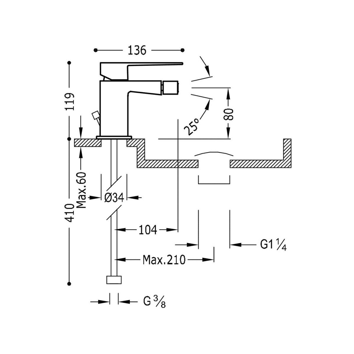 Tres Slim-Tres grifo para bidé de pie cromo 202.120.01.D