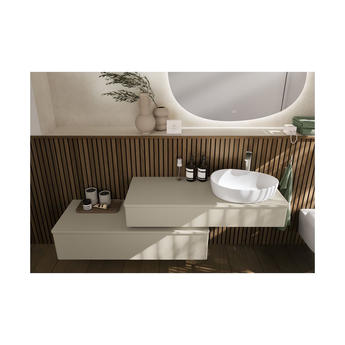 El espejo LED Antao es un elemento de equipamiento para el cuarto de baño que le aporta modernidad y estilo. El espejo iluminado es único por su forma orgánica inspirada en la naturaleza. La iluminación LED de pared que lo rodea se puede ajustar libremente, desde la luz blanca diurna hasta el blanco cálido, para crear un ambiente maravilloso. Además, la luz se puede regular individualmente, por lo que el espejo se convierte en el punto central de cualquier zona de lavado moderna. El manejo se realiza mediante el logotipo, que es un sensor táctil. Gracias al estándar ZigBee® Home Automation integrado, también es compatible con el sistema Smart Home. ¡Una solución inteligente!