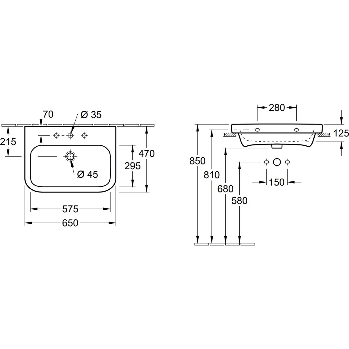 - dimensiones del lavabo: 57,5 x 29,5 cm