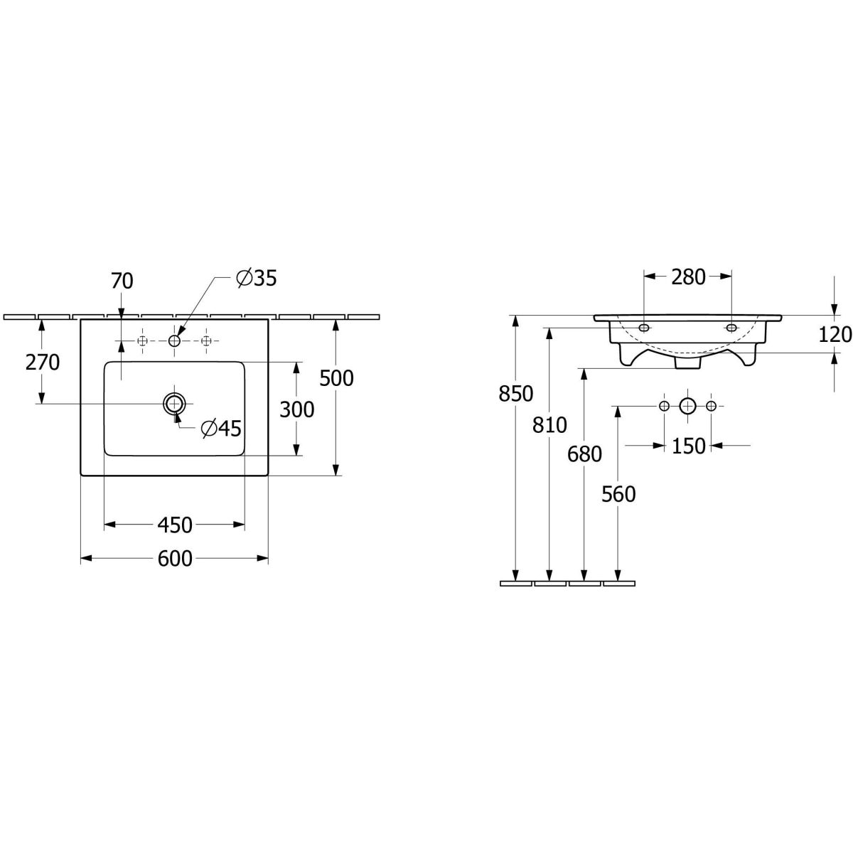 Dimensiones del lavabo: