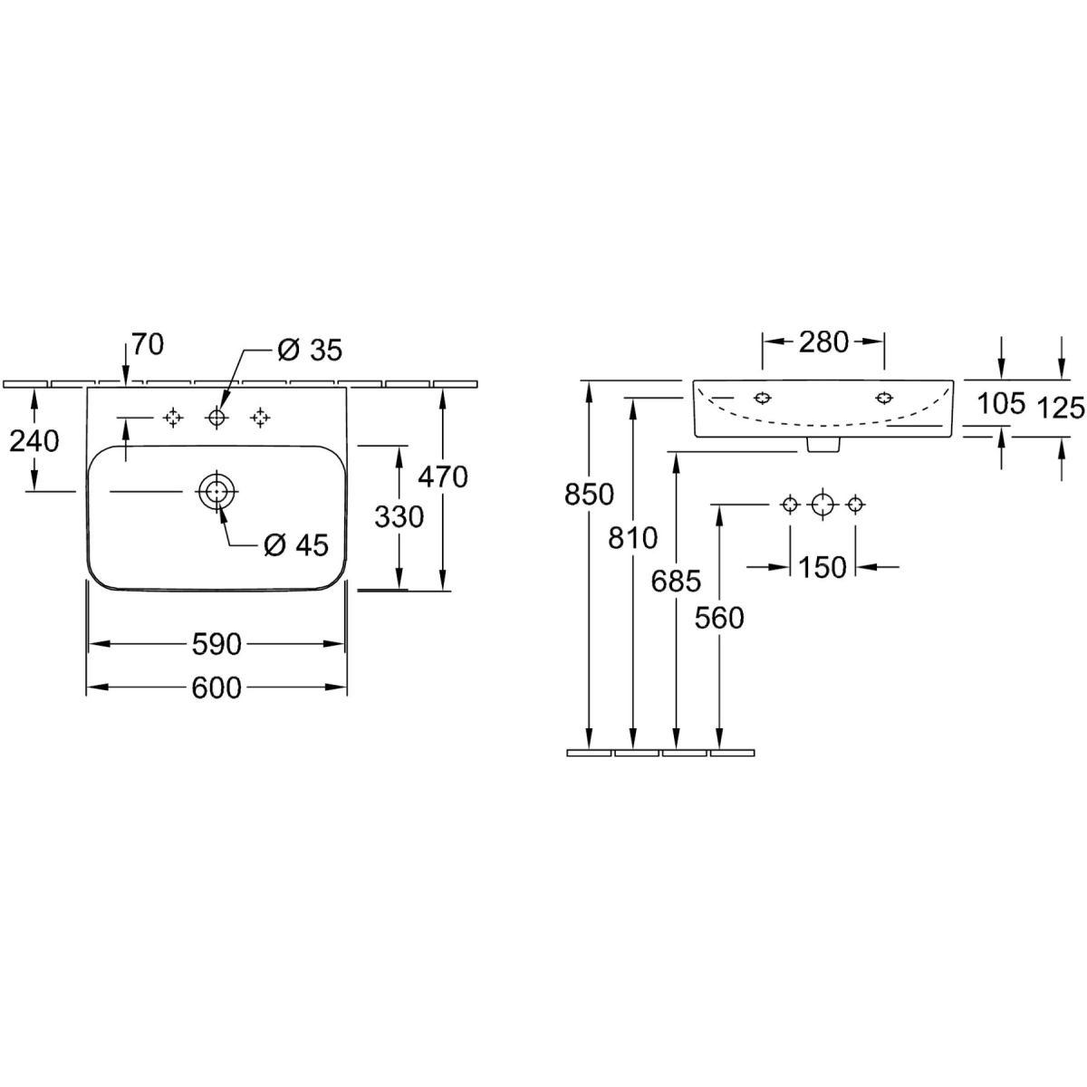 Villeroy & Boch Finion lavabo 60x47 cm rectangular clásico blanco 416861R1