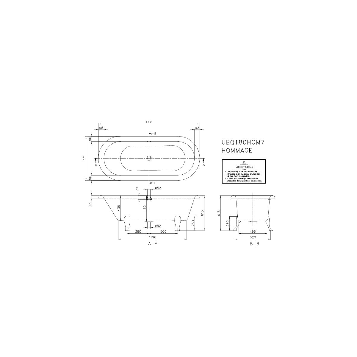 Villeroy & Boch Hommage bañera exenta 177.1x77.1 cm oval blanco-negro UBQ180HOM7WR7V-01