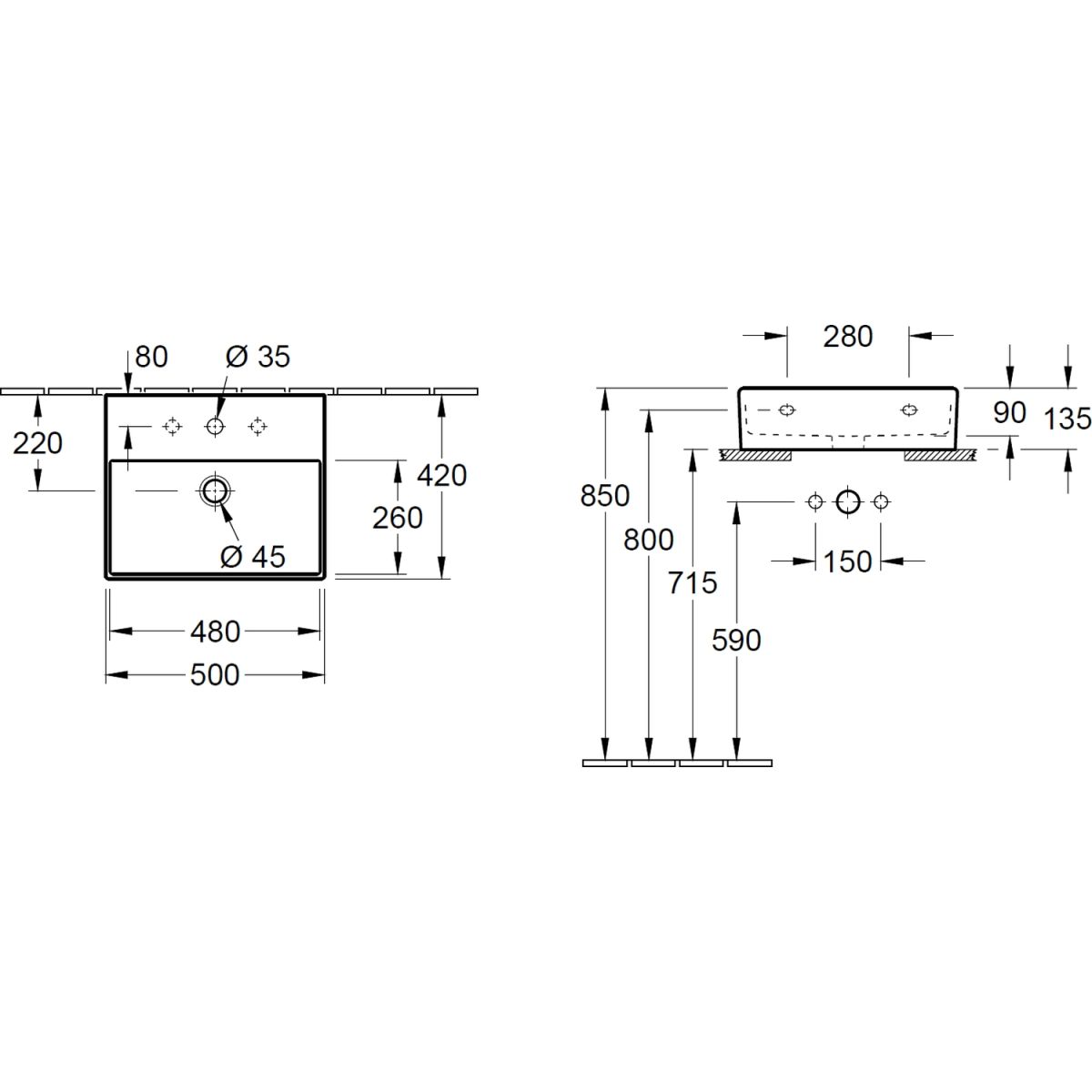 Villeroy & Boch Memento 2.0 lavabo 50x42 cm rectangular clásico-para mueble blanco 4A225LR1