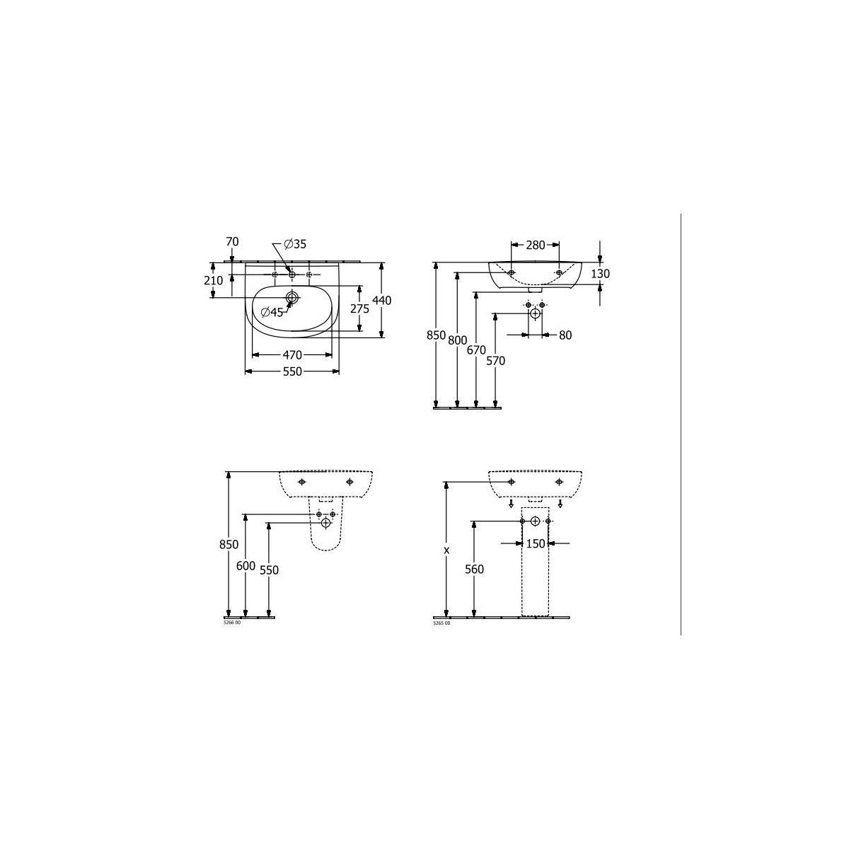 Villeroy & Boch O.Novo lavabo 55x44 cm semicircular clásico blanco 4A405501
