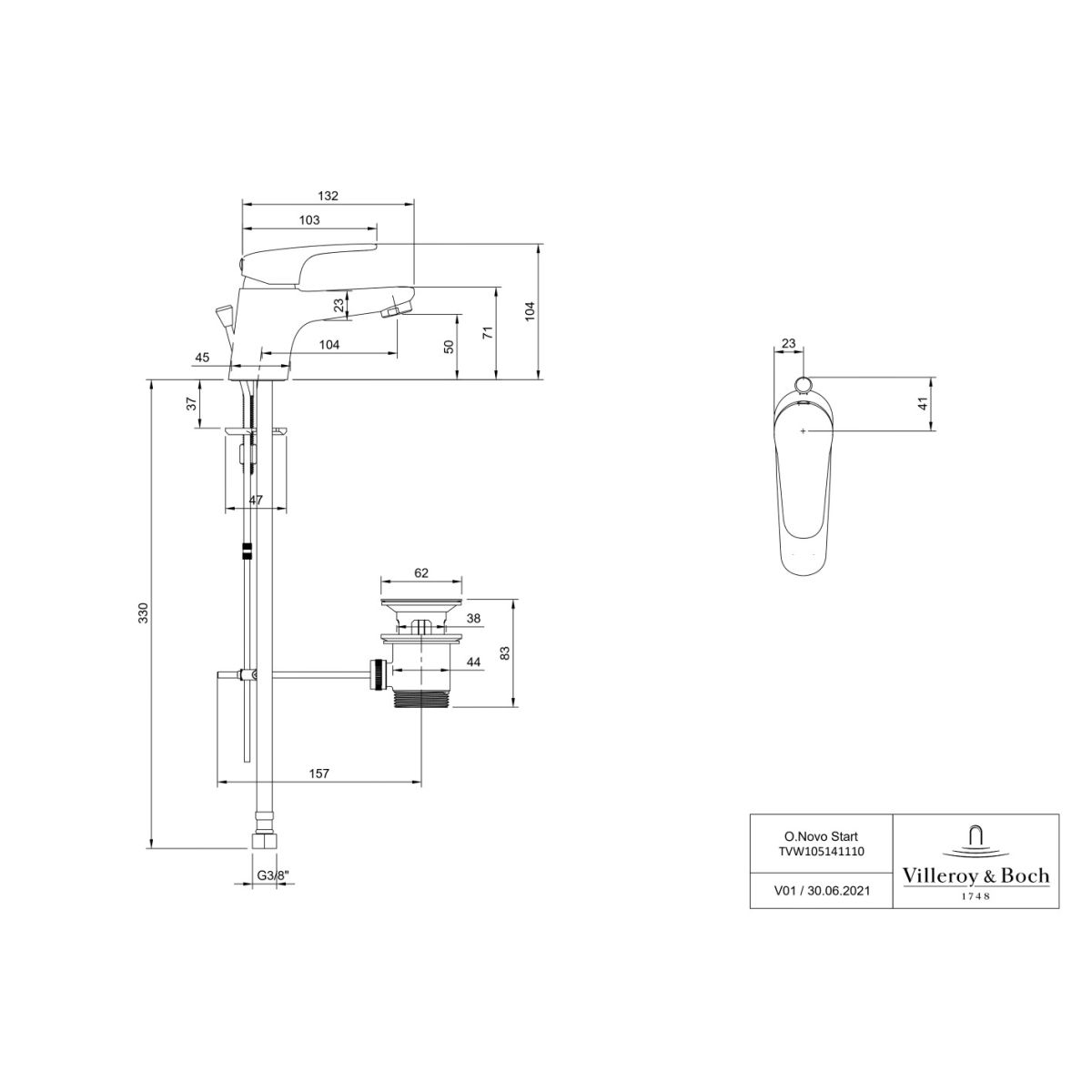 Villeroy & Boch O.Novo Start grifo para lavabo de pie cromo TVW10514111061