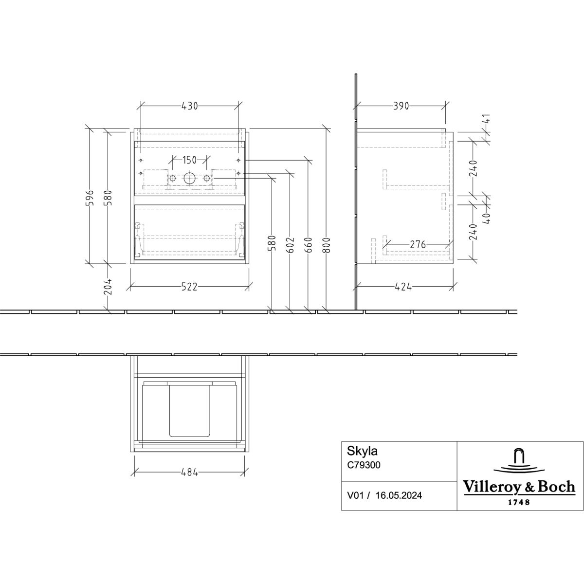 Villeroy & Boch Skyla armario 52.2x42.4x59.6 cm suspendido, para lavabo roble C79300RH