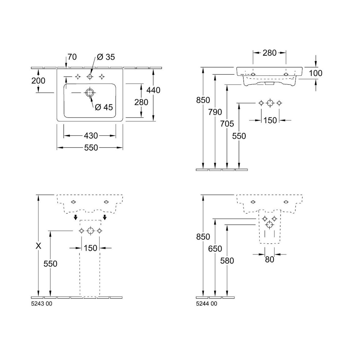 Villeroy & Boch Subway 2.0 lavabo 55x44 cm rectangular clásico blanco 71135501