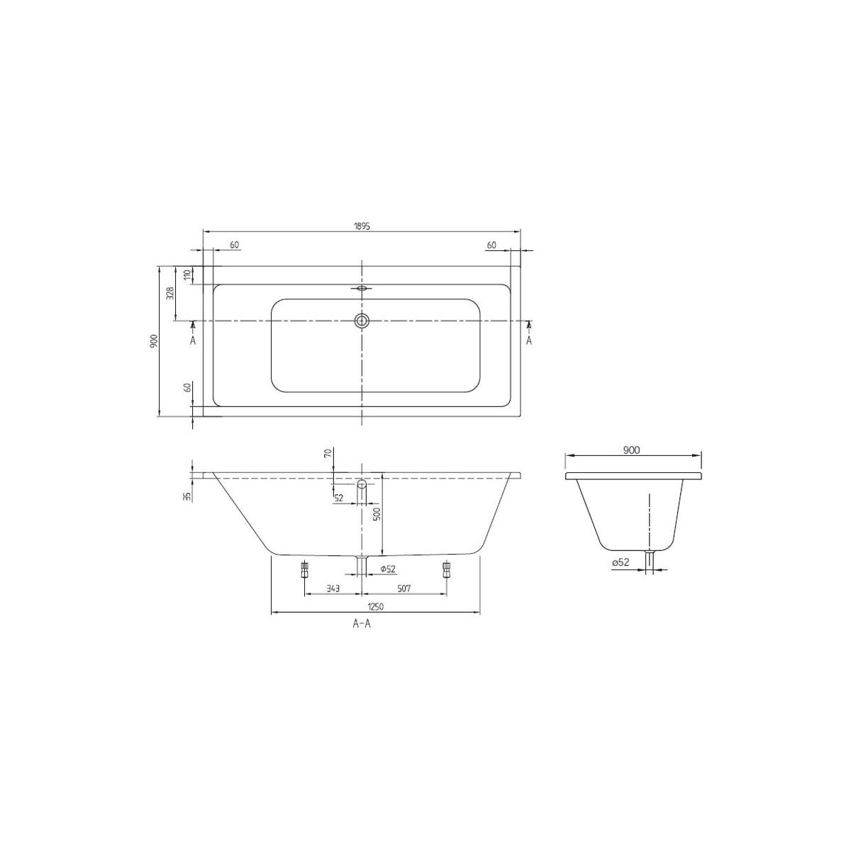 - dimensiones del fondo de la bañera: 125 x 53 cm