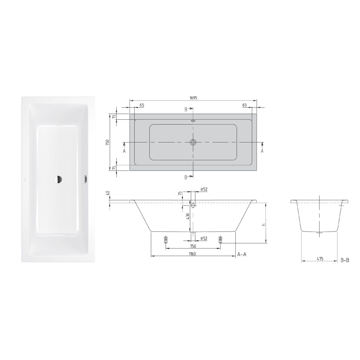 La bañera acrílica es un producto muy versátil. En primer lugar, al bañarnos en la bañera, sumergidos en el agua, permitimos que nuestro cuerpo se relaje y descanse tras las penurias de un día ajetreado. En segundo lugar, la bañera, gracias a la superficie específica del fondo, nos permite darnos un baño rápido de pie, es decir, una ducha. En tercer lugar, es una fuente indiscutible de alegría y diversión para los niños. En cuarto lugar, es posible hacer la colada en él en caso de avería repentina de la lavadora. Sin duda, se pueden mencionar varias ventajas más de un producto así. Una bañera así es la Targa Plus de Villeroy & Boch. Está hecha de acrílico de la más alta calidad para la fabricación de productos sanitarios. Este material es agradable al tacto, pero al mismo tiempo muy seguro para la piel humana, lo que ha sido confirmado por numerosas pruebas y homologaciones. El acrílico es un material que facilita relativamente la limpieza de la bañera. La bañera Targa Plus sólo está disponible en blanco -Weiss Alpin-, pero esto permite combinarla de forma segura con productos Villeroy & Boch fabricados en cerámica del mismo color (una diferencia muy sutil y prácticamente imperceptible en la estructura del color es el resultado de utilizar materiales diferentes para la producción de, por ejemplo, un lavabo de cerámica y una bañera acrílica, y este hecho es completamente obvio). La bañera Targa Plus es un ejemplo de diseño moderno. Forma regular y rectangular. La bañera sólo está disponible en versión empotrada, pero en el caso de cuartos de baño más grandes es posible colocar la estructura de pie, por ejemplo, en una posición central del cuarto de baño o cerca de una ventana, etc. La bañera sólo está disponible en versión empotrada, pero en el caso de cuartos de baño más grandes es posible construirla de forma que quede, por ejemplo, en posición central en el cuarto de baño o cerca de una ventana, etc. Los pies de la bañera y el sistema de rebosadero/desagüe no están incluidos en el volumen de suministro y deben pedirse por separado. Para el rebosadero y el sistema de desagüe, sugerimos la versión ampliada, que es mucho más versátil. Por cierto, cabe mencionar dos versiones de las bañeras Targa Plus: SOLO y DUO. En la versión SOLO, el rebosadero está preparado en la parte superior y central del lado corto, y la salida está situada a poca distancia de este lado, en el centro. La versión DUO, en cambio, tiene el rebosadero en la parte superior central del lado largo y la salida en la parte central del día, lo que permite que dos personas utilicen la bañera al mismo tiempo. Esto puede verse en los dibujos técnicos y las fotos de las bañeras individuales.