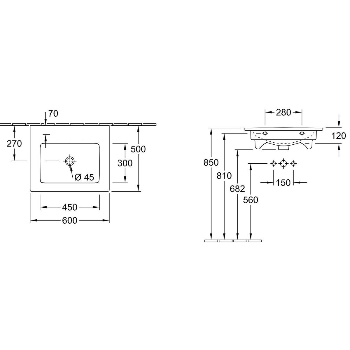 Villeroy & Boch Venticello lavabo 60x50 cm rectangular clásico-para mueble blanco 412462R1